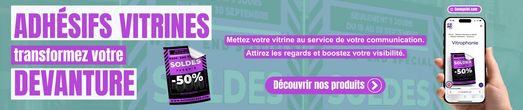 C’est la solution idéale pour vos campagnes saisonnières, vos périodes de soldes ou pour transmettre des messages forts en vitrine. Avec notre configurateur en ligne, réalisez votre projet simplement et rapidement.