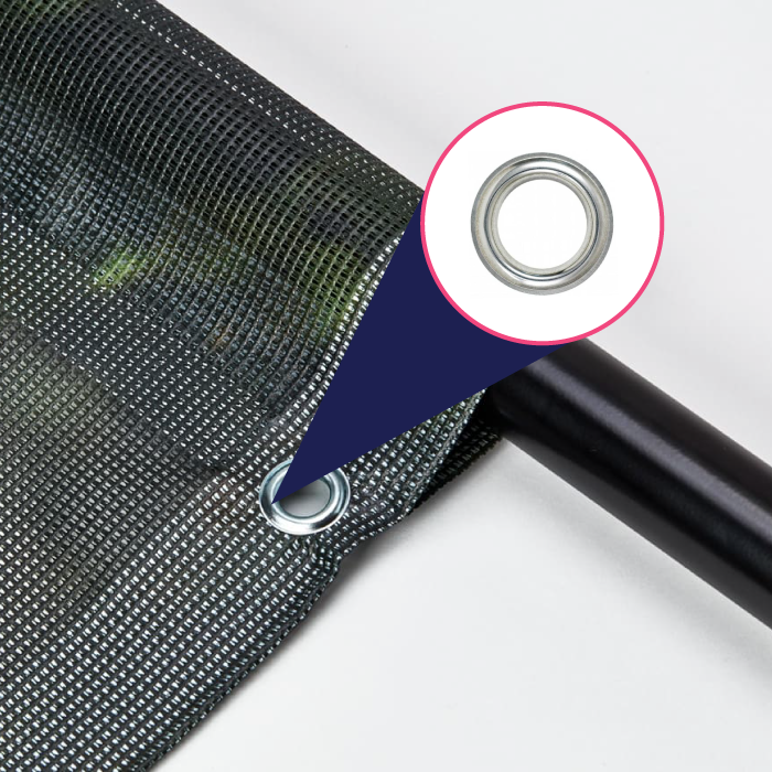 Lors de la personnalisation de vos banderoles, deux supports d’impression s’offrent à vous : la Bâche éco 440g ou le Textile. A noter que la Bâche éco constitue le meilleur rapport qualité/prix pour une exposition de courte durée. Vous apprécierez leur facilité d’installation grâce au système de 16 œillets inclus.
