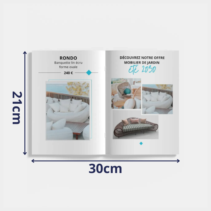 L’impression en format A4 ouvert, A5 cm fermé, vous offre une brochure au format pratique et facile à distribuer.
