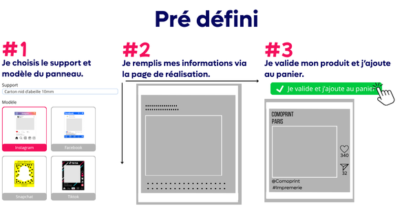 Chez Comoprint, nous vous aidons à transformer vos projets d’impression en événements réussit. Grâce à nos machines très modernes, nous réalisons votre cadre photobooth rapidement si vous choisissez une livraison express 24h. Nous imprimons vos supports en haute définition sur carton rigide avec une découpe nette. Choisir Comoprint, c’est un imprimeur rapide et une fabrication 100% française, situé en région parisienne. Vous pouvez même venir dans nos locaux pour récupérer votre commande et échanger avec nos équipes. Bénéficiez d’un service client réactif composé d’une équipe d’expert, prêts à répondre à vos sollicitations. Comoprint, c’est un partenaire d’impression alliant qualité professionnelle, prix compétitifs et délais rapide.