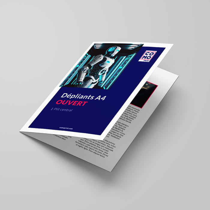 Le format A4 (21x29,7cm) pour un dépliant publicitaire est un moyen format, il contient assez d’espace pour contenir un maximum d’informations et séduire vos prospects. C’est le format le plus prisé des annonceurs !