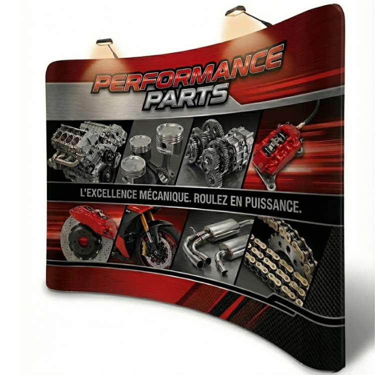 Ce mur d’image incurvé n’est pas un simple support portable facile à transporter pour les professionnels. Sa structure tubulaire légère avec sa housse permet d’afficher un bon nombre d’informations et attire l’attention à plusieurs mètres.