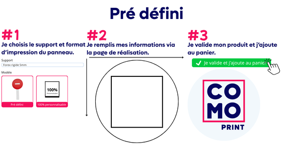 Le panneau à main peut être entièrement personnalisé selon vos besoins. Que vous souhaitiez un message institutionnel, humoristique ou promotionnel, Comoprint adapte votre visuel au format choisi :