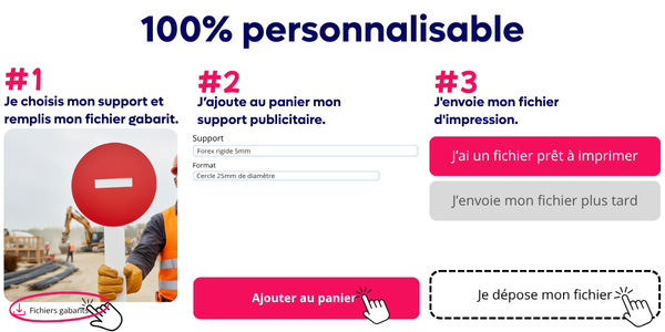 Absolument. Des découpes personnalisées sont possibles selon votre visuel ou votre brief (ex : flèche, mascotte, bulle de BD...).