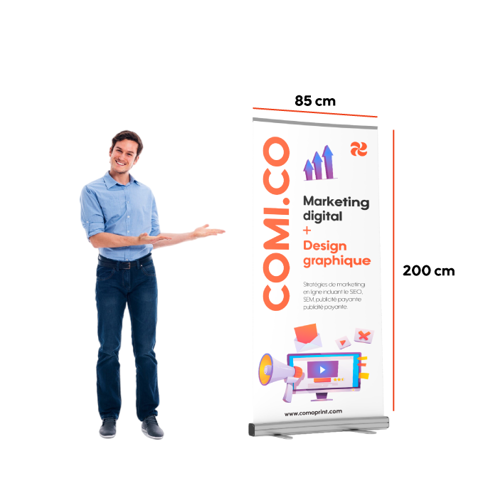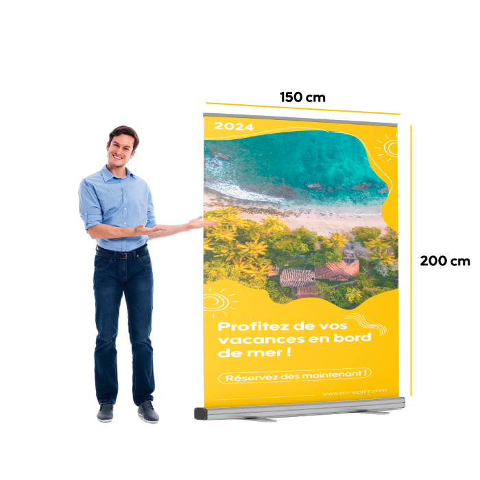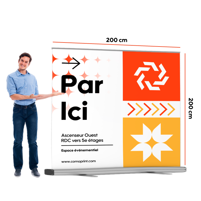 Contrairement à un kakémono sur pied d’entrée de gamme, celui-ci a été conçu pour une utilisation plus intensive. Avec sa toile imprimée enroulée dans son boitier en aluminium solide, elle est protégée des coups et manipulations. Sa qualité d’impression combinée à un support bien tendu vous garantit un rendu professionnel pour chaque fois que vous le sortirez. Sa structure permet une stabilité renforcée et offre un maintien parfait même disposé dans un endroit de fort passage.