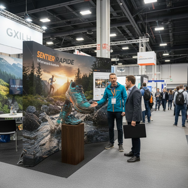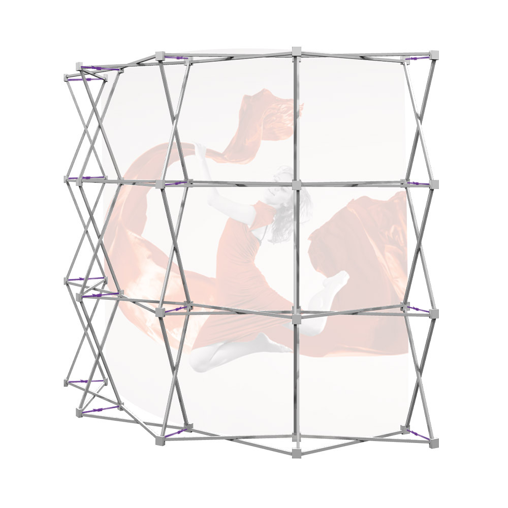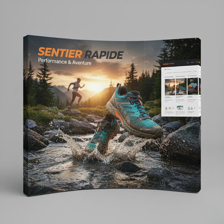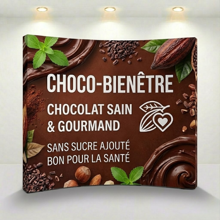 La forme courbée permet de capter le regard et l’attention des passants. Il permet aussi de plonger le visiteur dans l’univers de votre marque. Sa structure autoportante et légère en fait une solution idéale pour une communication efficace et durable.