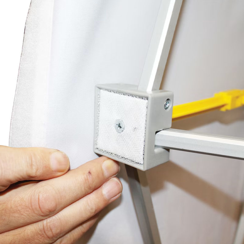 Notre Stand-Hop se caractérise par une grande facilité d’utilisation, un atout qui en fait un véritable allié pour vous accompagner lors de vos expositions. Seules quelques minutes suffisent pour le déployer puisque le visuel textile est directement fixé sur sa structure pliable. Ainsi, le visuel imprimé est tout de suite prêt à faire son effet. A noter que vous pouvez régler sa verticalité à l’aide de petites molettes présentes sur les côtés.