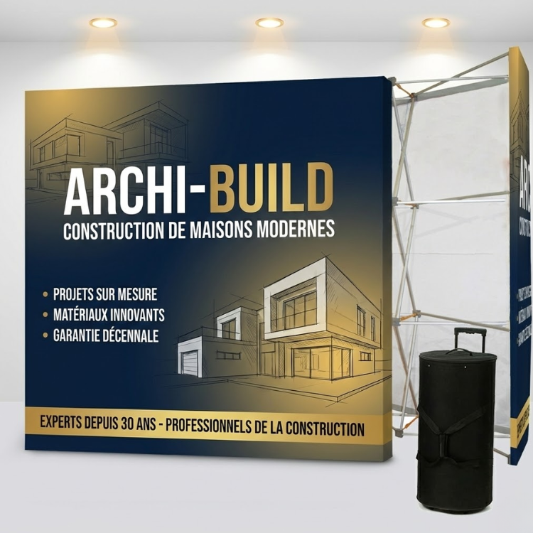 Opter pour un stand parapluie, c’est choisir l’un des supports incontournables comme fond de décor. Il permet d’être déplié en quelques secondes grâce à son mécanisme. Le visuel n’a pas besoin d’être fixé par vous-même, car il est déjà positionné dessus lors de son rangement. C’est la solution idéale pour les professionnels qui ne souhaitent pas perdre de temps sur un salon.