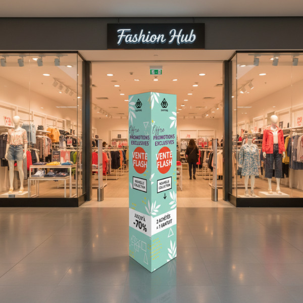 Le totem 3 faces est un support de communication incontournable pour capter l'attention sous tous les angles. Grace à ses trois surfaces d'affichage triangulaires, ce totem publicitaire diffuse vos messages promotionnels de manière optimale lors de vos événements professionnels, dans vos points de vente ou espaces d'accueil.
