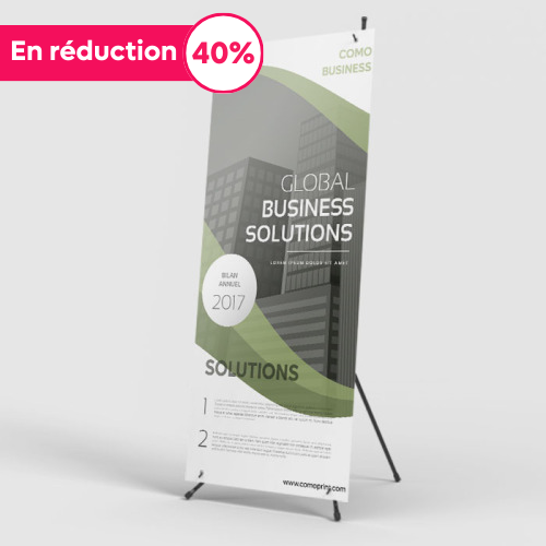 Le visuel de votre X-Banner est imprimé sur une bâche souple. Les bâches que nous proposons garantissent un bon rendu des couleurs, une tenue correcte dans le temps pour un usage ponctuel et une facilité d’enroulement sans froissement.